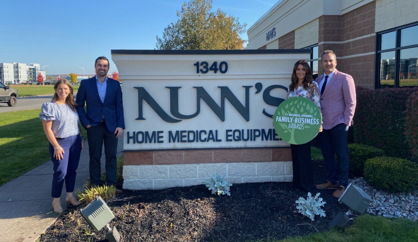 Nunn’s Home Medical, founded in 1942 by Martin J. Nunn, grew from a small business meeting his own need for a wheelchair into a trusted provider of medical equipment rentals. Passed down to his daughters, Sheila Murphy and Nancy Nunn Ryan, and son-in-law Joe Ryan, the company is now led by Martin's granddaughter, Erin Weiman, and her husband Shawn. Recently, Nunn’s was honored as the winner of the Multi-Generational Family Business category at the CNY Business Journal Family Business Contest. Celebrating its 80th anniversary, the company continues to thrive, partnering with healthcare providers across 25 counties in Central New York and employing over 80 people, including Erin's siblings.
